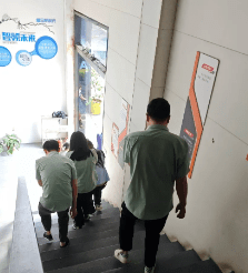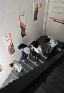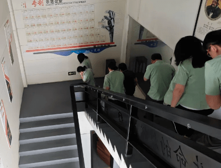 演习首项内容为模拟火灾逃生。随着警报声骤然响起,办公室内瞬间紧张起来。全体员工迅速而有序地按照预先规划的安全路线撤离。在模拟环境中,每位员工都沉着冷静,用手捂住口鼻,弯腰低姿快速向安全出口移动,充分展示了日常演练的成效。
