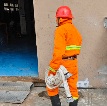 最激动人心的莫过于穿戴消防服,操作消防栓灭火的环节。几位员工代表迅速穿上厚重的消防服,带上头盔,拿起消防水带,动作利落。在消防专员的指挥下,他们准确连接水源与消防栓,强大的水流瞬间喷涌而出,精准扑向模拟着火点。这一刻,不仅考验了个人的操作技能,更彰显了团队协作的力量。